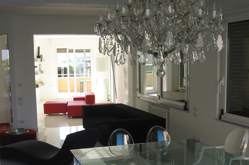 Il progetto ha rivoluzionato l'impianto dell'appartamento esistente e la ristrutturazione, è stata realizzata con largo uso di tecnologie moderne, la casa è inoltre impreziosita da due splendici terrazzi panoramici che sono stati a loro volta progettati e che fanno oggi parte a pieno titolo dell'arredo stesso.